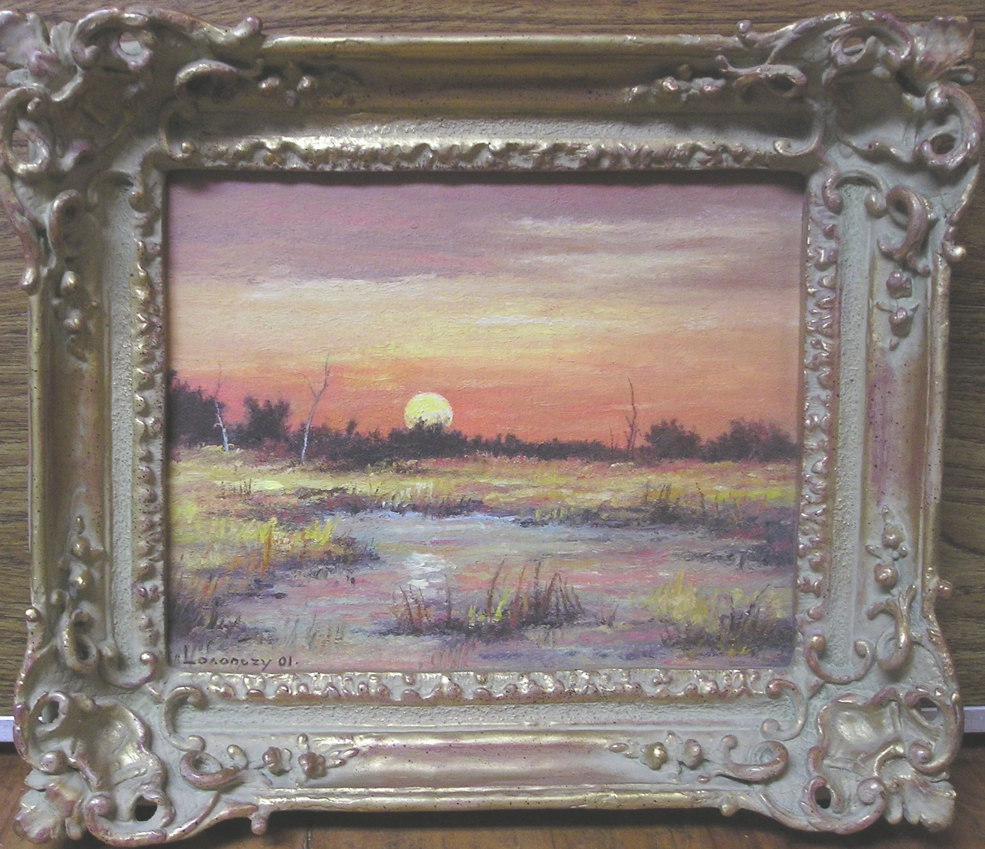 Water Scenes Waterfall Scene (#L253A) 11 X 14 in. Geese Flying Over the Marsh (#L256A) 28 X 16 in. White Heron I (#L259A) 10 X 8.5 in. Evening at the Lake (#L263A) 20 X 16 in. White Heron II (#L265A) 11 X 14 in. Sunset with Goose (#L269A) 36 X 24 in. Marsh Scene with Geese Flying at Sunset (#L272A) 18 X 12 in. Woman Reading by River (#L275A) 24 X 18 in. Marsh Scene (#L278A) 30 X 24 in. Lakeside at Dover (#L280A) 24 X 30 in. Sunset at the Eastern Shore (#L284A) 24 X 30 in. Sitting by the River (#L287A) 8.5 X 7.5 in. Pier at Sunset (#L290A) 20 X 15 in. Cloudy Day (#L293A) 24 X 20 in. Ducks (#L297A) 13 X 17.5 in. Copy of Terpning (#L299A) 10 X 17 in. Riverview (#L303A) 28 X 24 in. Sunset over the Marsh III (#L305A) 10 X 8.5 in. Boats at the Dock (#L254A) 24 X 18 in. Riverview at Dusk (#L257A) 30 X 24 in. Eastern Shore Scene (#L260A) 22 X 18.5 in. Sunset (#L264A) 10 X 8 in. House by the Water (#L267A) 24 X 14 in. Fisherman Rowing to Shore (#L270A) 24 X 18 in. Landscape with Water & Trees (#L273A) 20 X 16 in. Sunbathers (#L276A) 30 X 24 in. Sitting on the Dock (#L282A) 24 X 18 in. River at Night (#L281A) 30 X 20 in. Trees at the Riverside (#L285A) 20 X 16 in. River Scene with Large Tree (#L288A) 30 X 24 in. Lake with Fence (#L291A) 24 X 18 in. Canyon with Waterfall (#L294A) 32 X 28 in. Marshland/Eastern Shore Landscape (#L296A) 22 X 18 in. Cypress Swamp (#L298A) 36 X 24 in. Geese Flying over Marsh II (#L304A) 20 X 16 in. Sunset over the Marsh IV (#L306A) Misty Evening over the Marsh (#L255A) 32 X 28 in. At the Eastern Shore (#L258A) 16 X 12 in. Fishing Boat Headed toward Shore (#L262A) 20 X 16 in. The Marsh (#L261A) 14 X 12 in. Heron (#L268A) 14 X 11 in. Women Talking by the River (#L271A) 30 X 24 in. Sailboat on the Lake I (#L274A) 10 X 8 in. Sunset over the Marsh I (#L277A) 14 X 11 in. Waterfall (#L279A) 18 X 24 in. Marshland (#L283A) Water Scene (#L286A) 20 X 16 in. House by the River (#L289A) 11 X 14 in. Sailboat on the Lake II (#L292A) 15.5 X 12 in. Landscape with Yellow Flowers (#L295A) 30 X 24 in. Copy of Monet (#L300A) 16 X 20 in. Evening at Chesapeake (#L302A) 27 X 20 in. Sunset over the Marsh II (#L301A) 10 X 8 in.